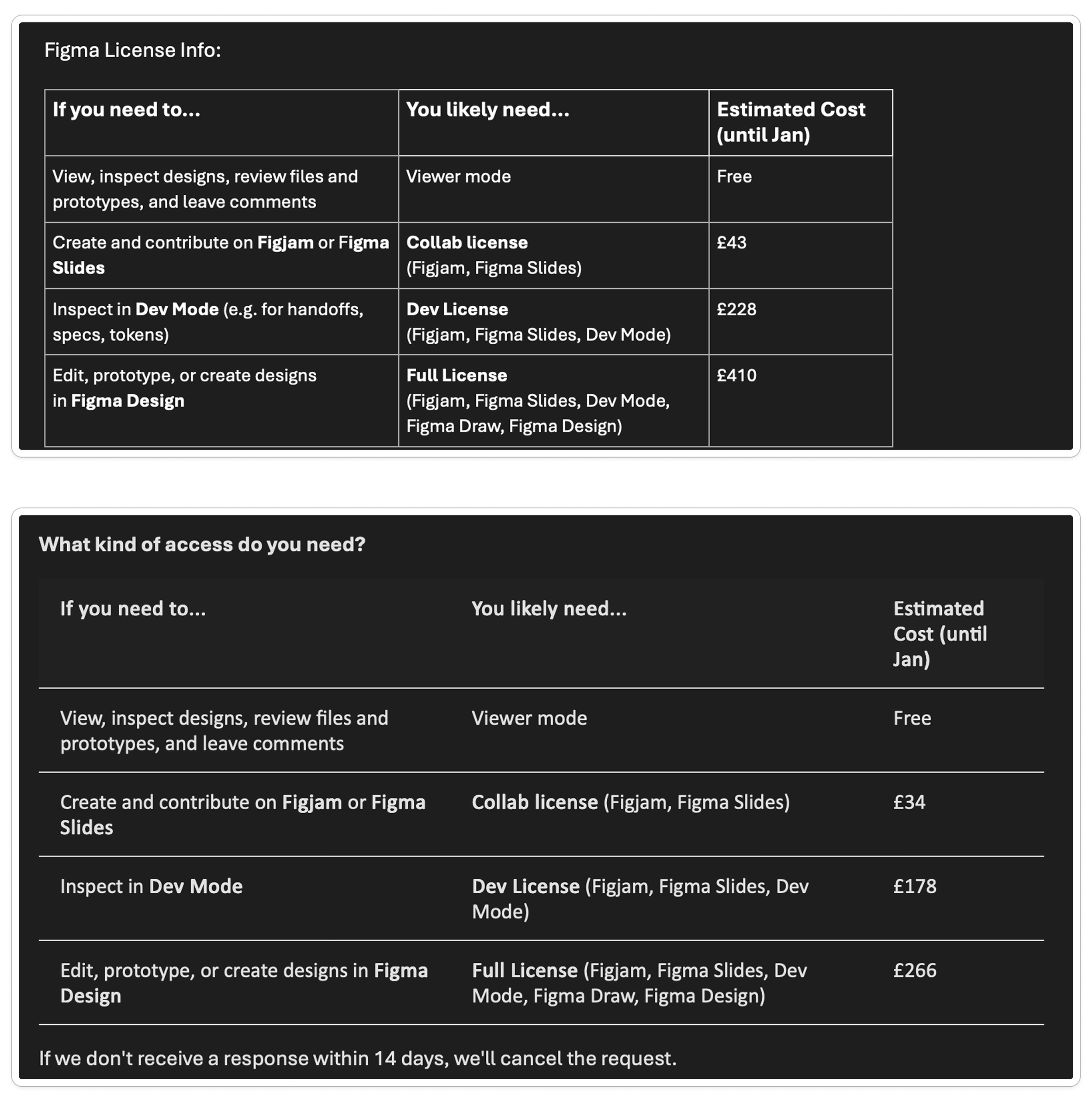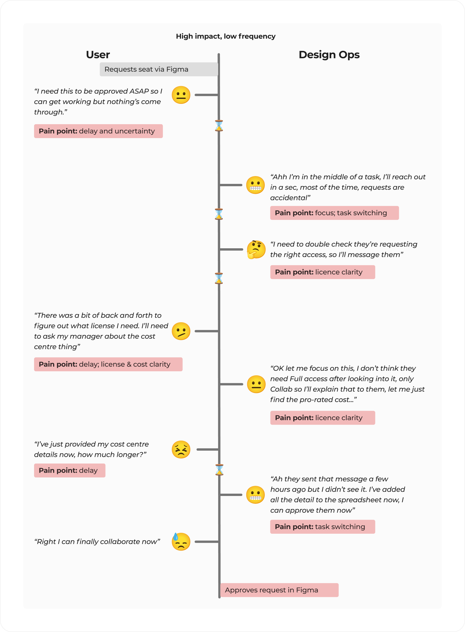 Analysis of the user journey showed that users lacked clarity on licence types, costs and approval steps leading to avoidable follow-up work with no value to either Design Ops or the requestor.