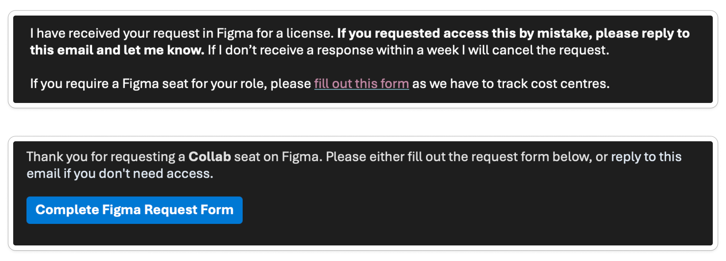 Around 20 Figma licence requests came through a week, through multiple channels - Figma, email, and Teams - with no clear process, costing time and money.