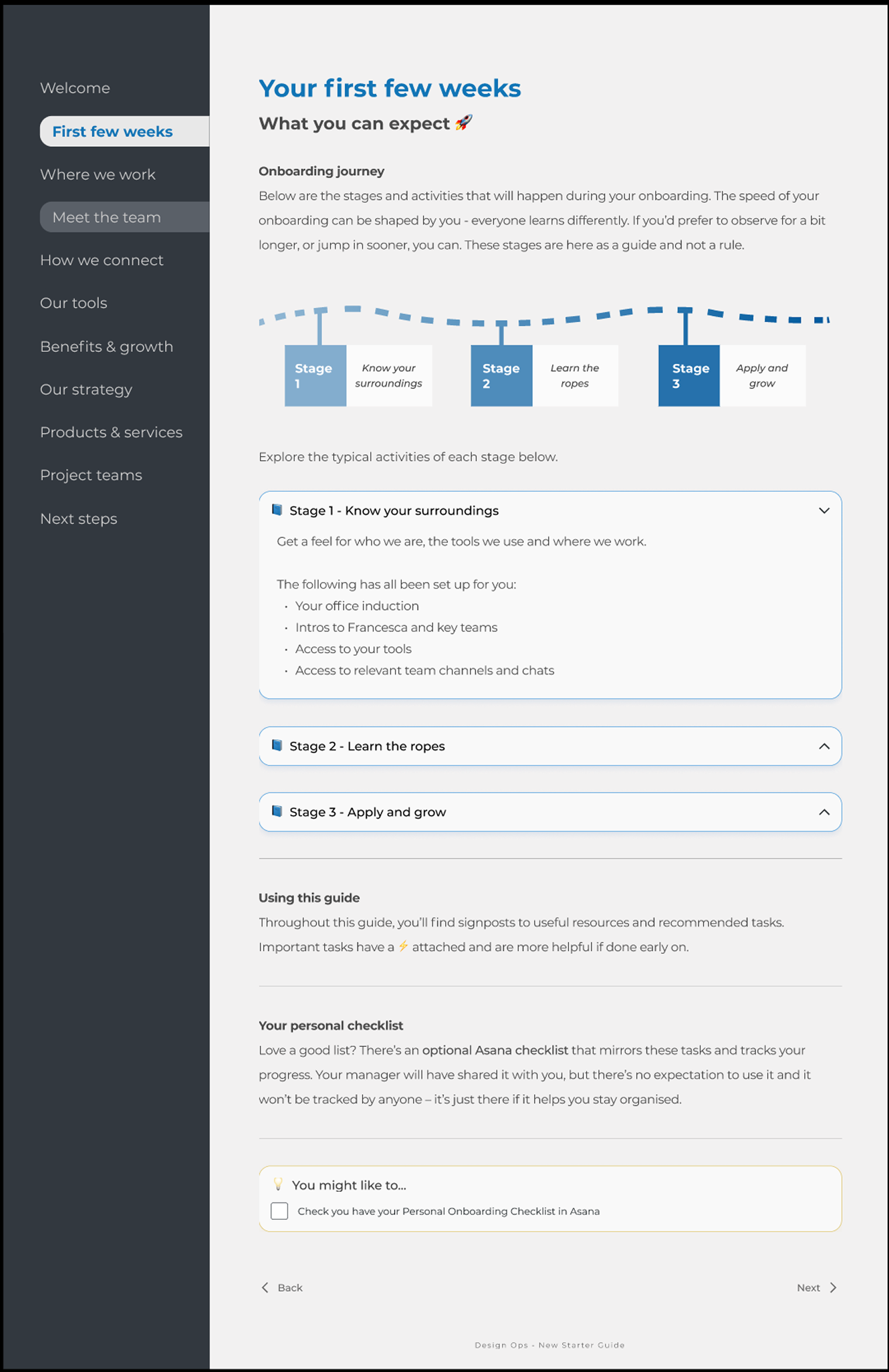 The guide gained strong internal traction. The Studio team asked for their own version, and the project received notably positive feedback when presented. The next cohort will use the new guide, where we’ll begin capturing metrics.